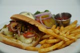 Shaved beef, onions, mushrooms, green peppers and provolone cheese.
